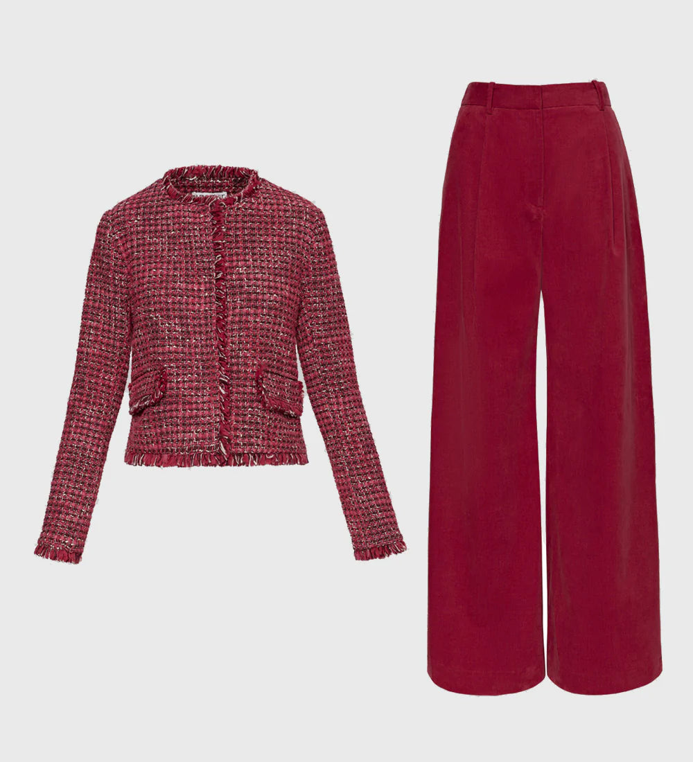 Tip: Add an unexpected element by combining two textured pieces in a jewel tone color.