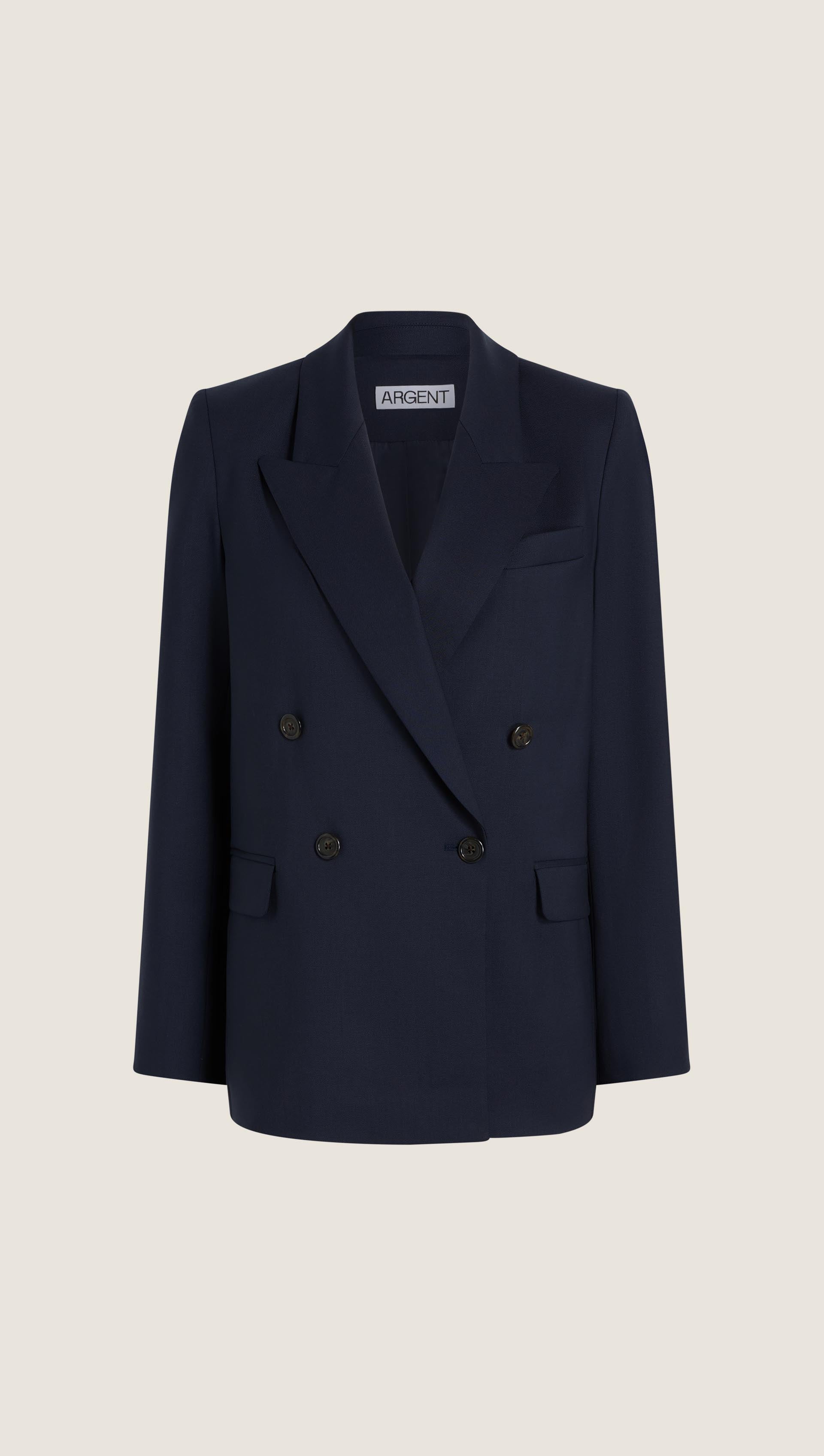 The Peak Lapel Blazer in Seasonless Wool will take you from fall to spring and back, no matter the weather. Design highlights include the aforementioned peak lapel, an easy double-breasted closure, slim fitting shoulders, a straight and loose body for a very comfortable fit, as well as interior pockets.