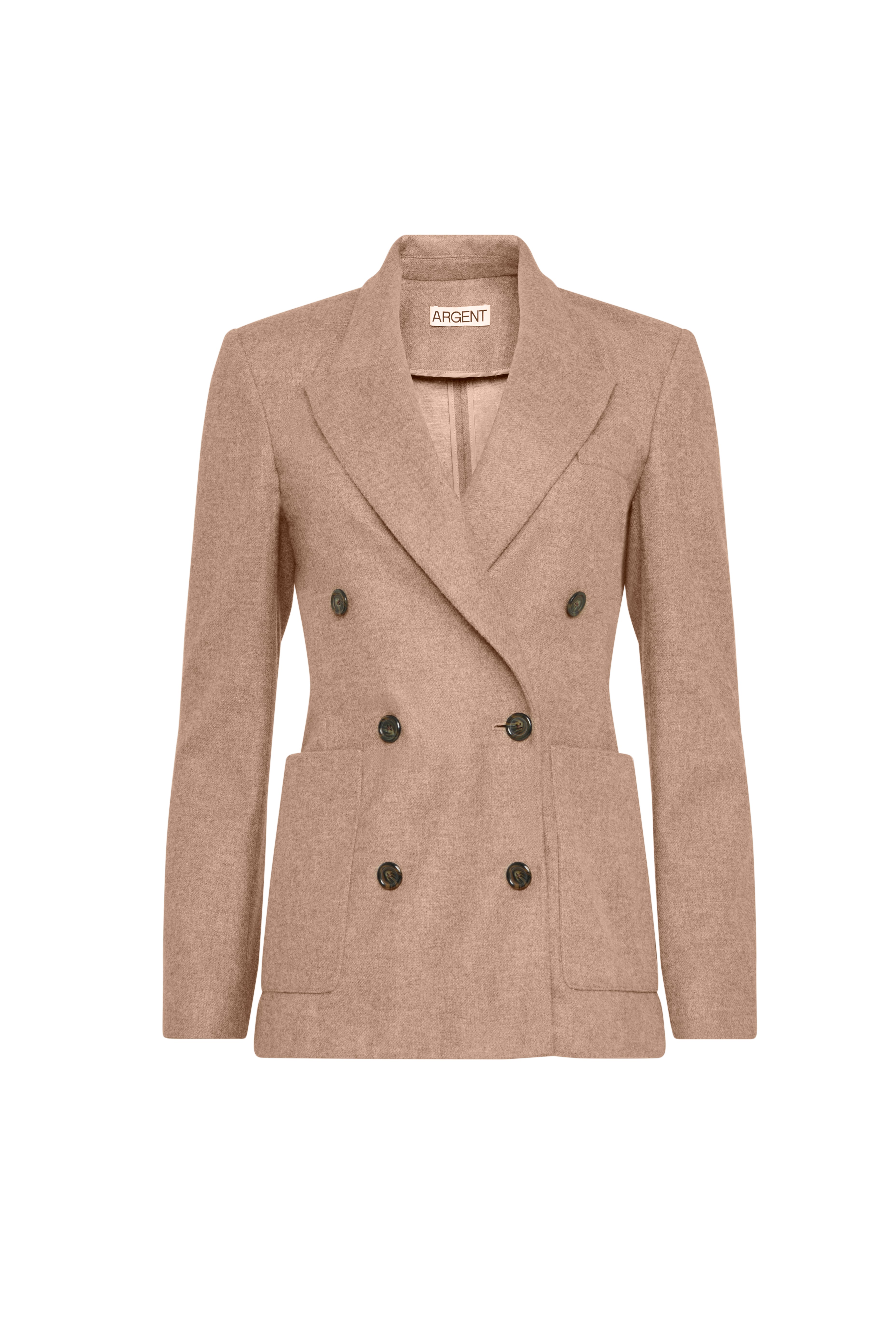 Offering a slightly cinched waist and a fitted hourglass shape, this cozy double-faced wool mixes style and comfort without hesitation. Additional details include large exterior patch pockets, interior pockets, and smart cuff sleeves. Finish the ensemble with a classic tee, with your pick between the corresponding midi-skirt or trousers.
