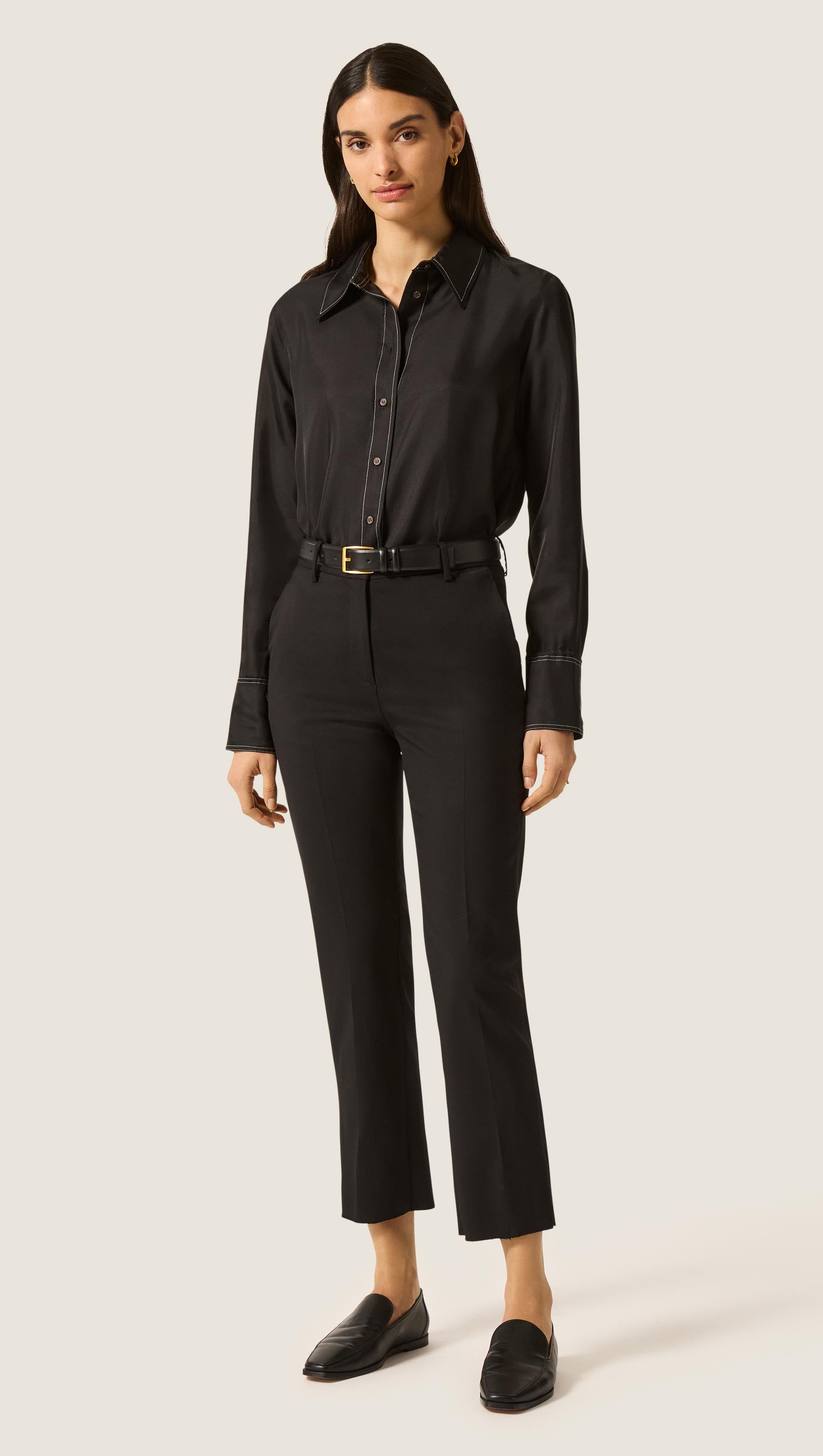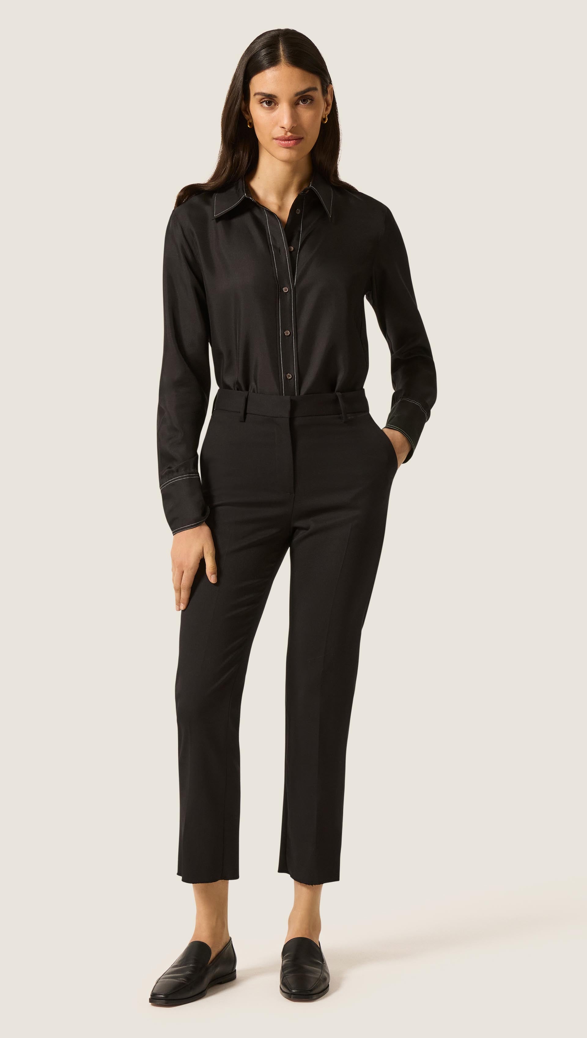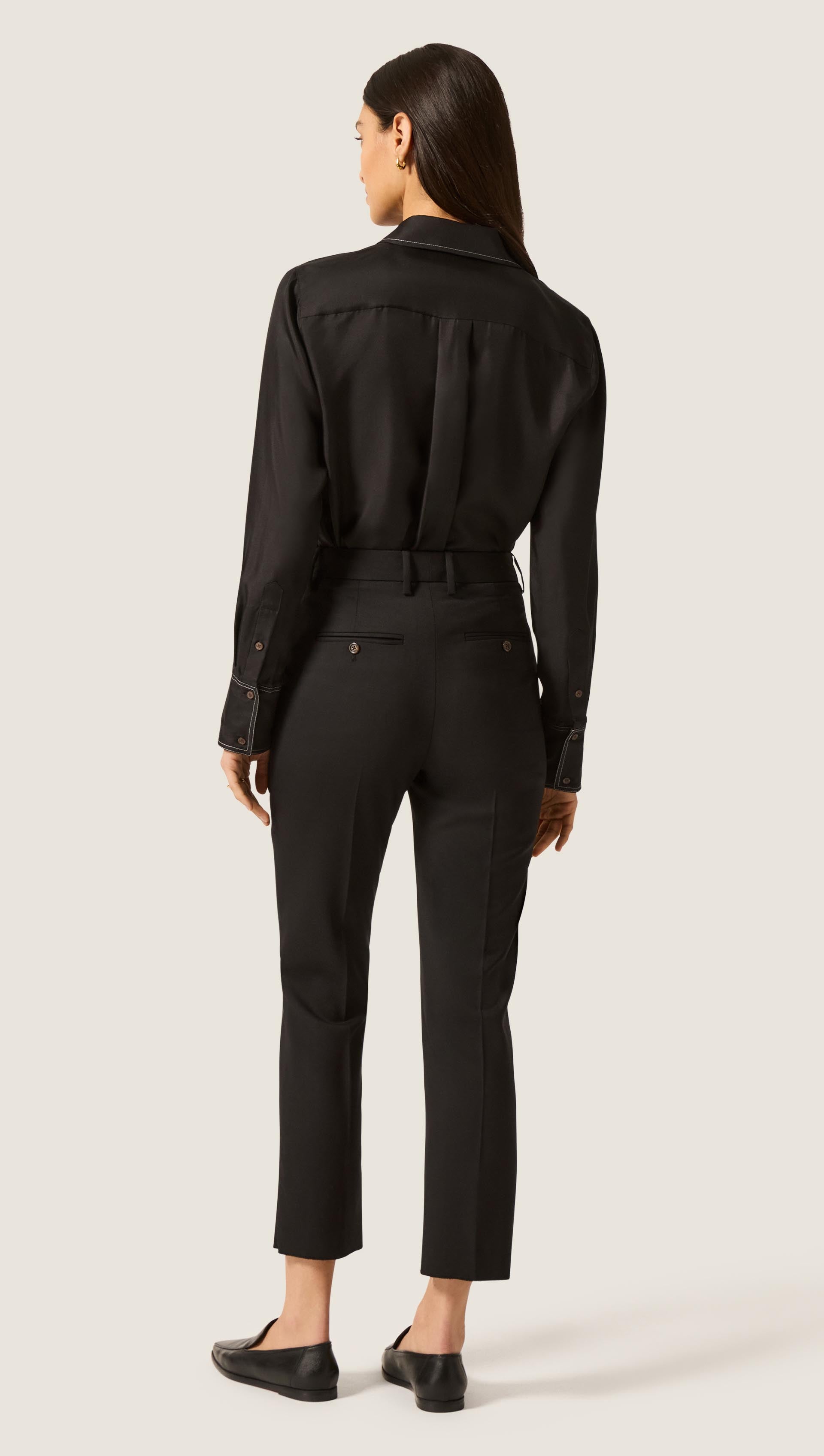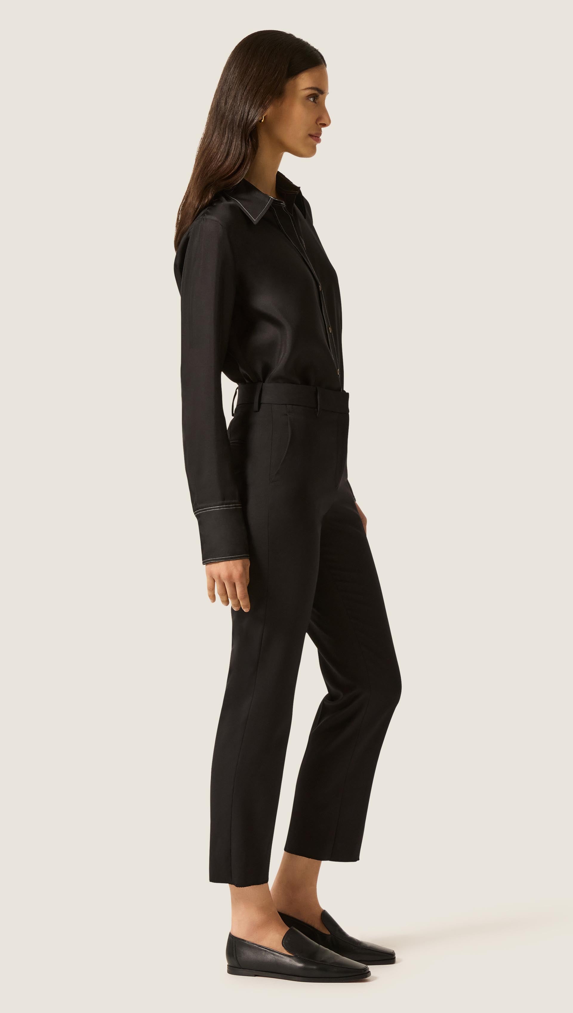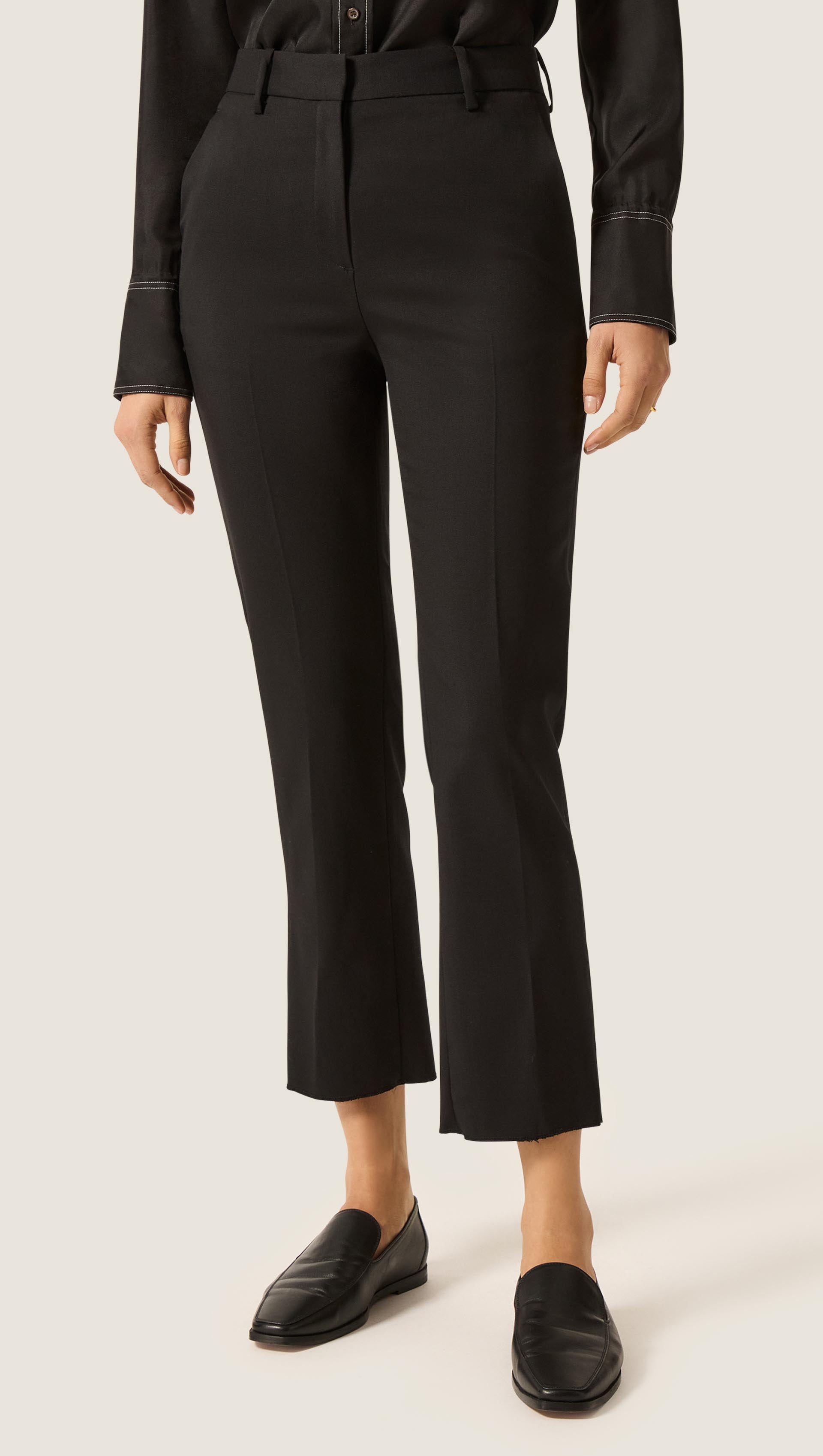 Cropped Straight Leg Trouser in Seasonless Wool | Black