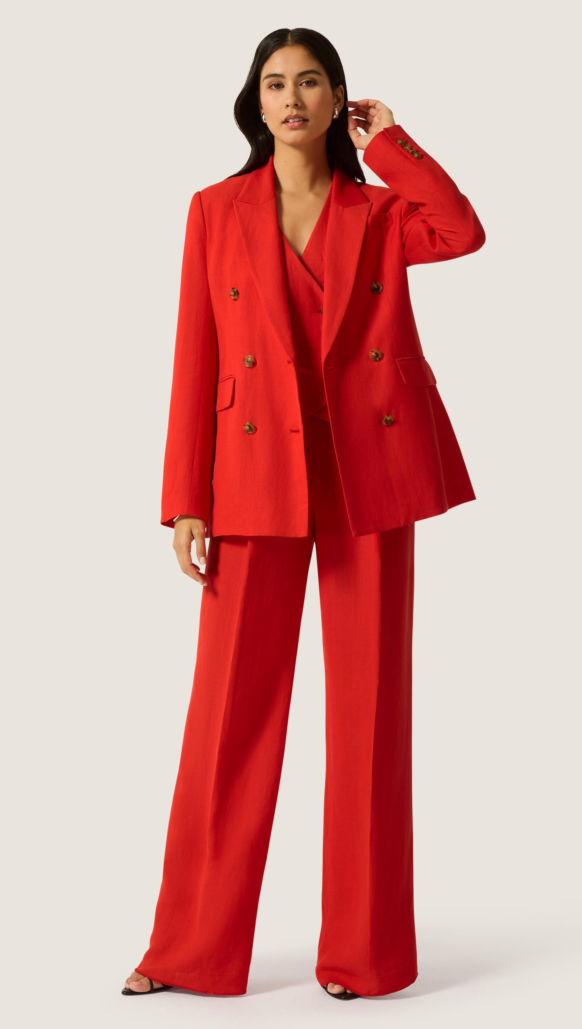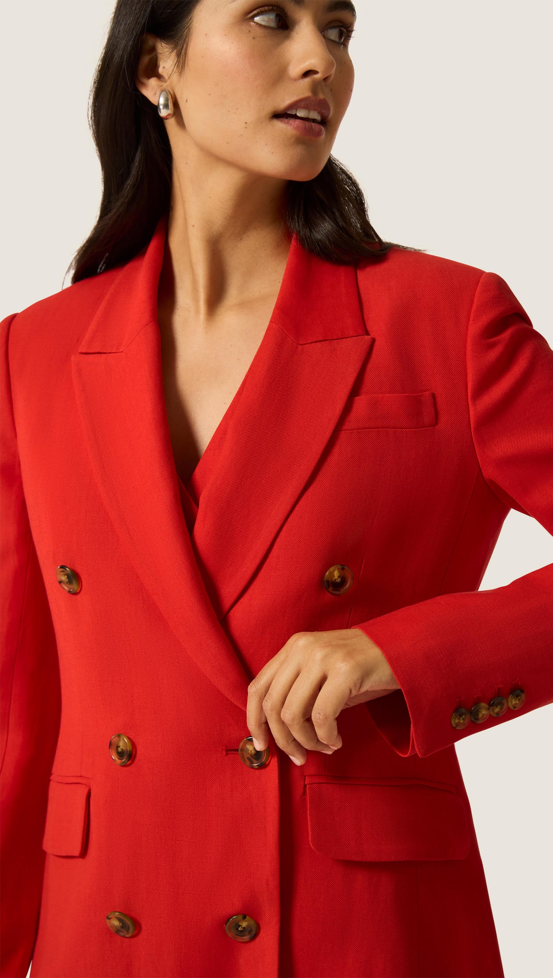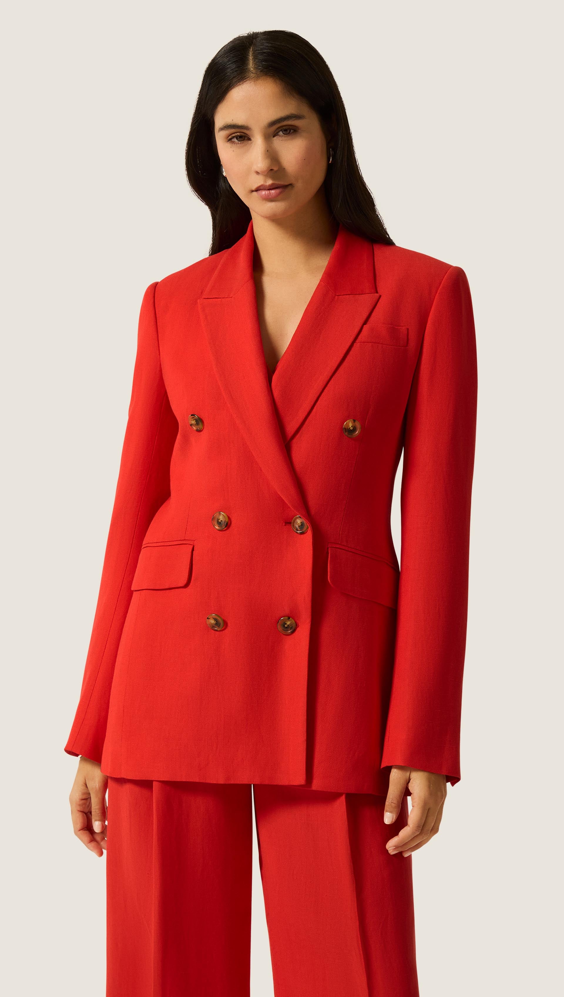Made of Italian seasonless wool, this elevated classic features traditional suiting details like a double-breasted closure, a peak lapel, sculpted shoulders, and interior pockets. Our Double-Breasted Blazer pairs great with a pair of chic trousers or dressed down with a classic tee and denim combo.