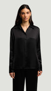This slim fit blouse is bound to be your new go-to. The long-length button-up features lined lapels and side slit hems. Wear this top partially tucked, fully tucked, or untucked with your favorite pair of trousers.