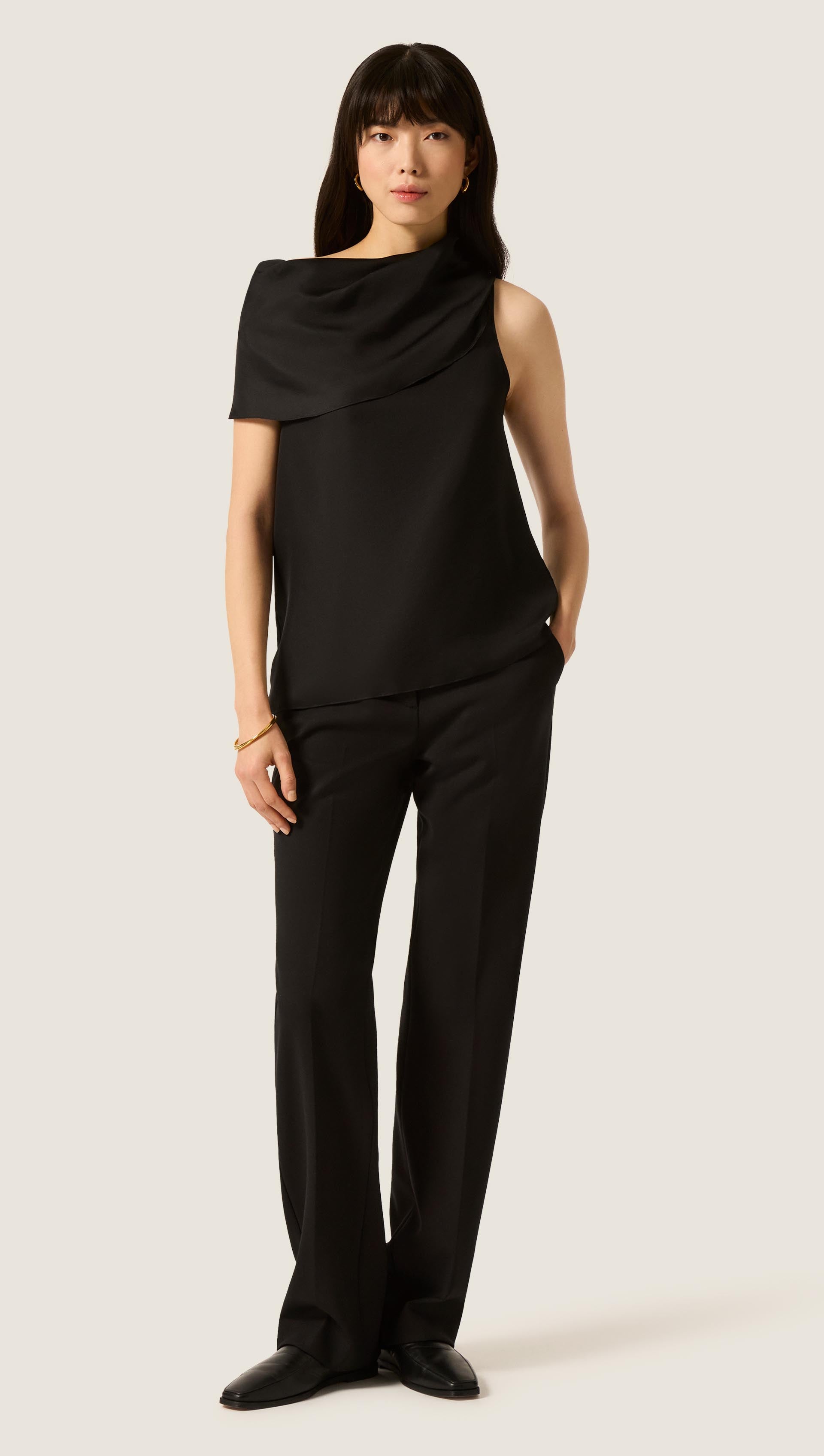 Endless styling potential defines the Funnel Neck Dress. The versatile neckline can be swept elegantly over one shoulder or arm for a dramatic, elongated silhouette, or softly puddled at the front for a relaxed, effortless drape. Fluid, intentional, and endlessly adaptable, it’s a dress that invites creativity—no two wears are ever the same.