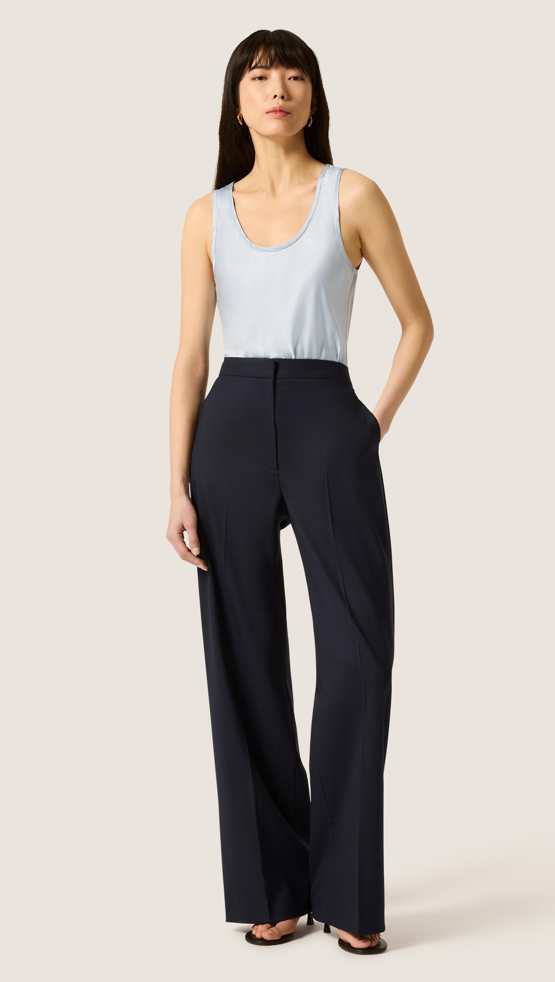 Designed to throw on and go, this straight-fit tank top effortlessly falls along the body. Crafted from lightweight, silk fabric, its breezy shape and feel make it an essential layering item. Style with sophisticated suiting or tailored trousers and tees, depending on the mood you’re going for.