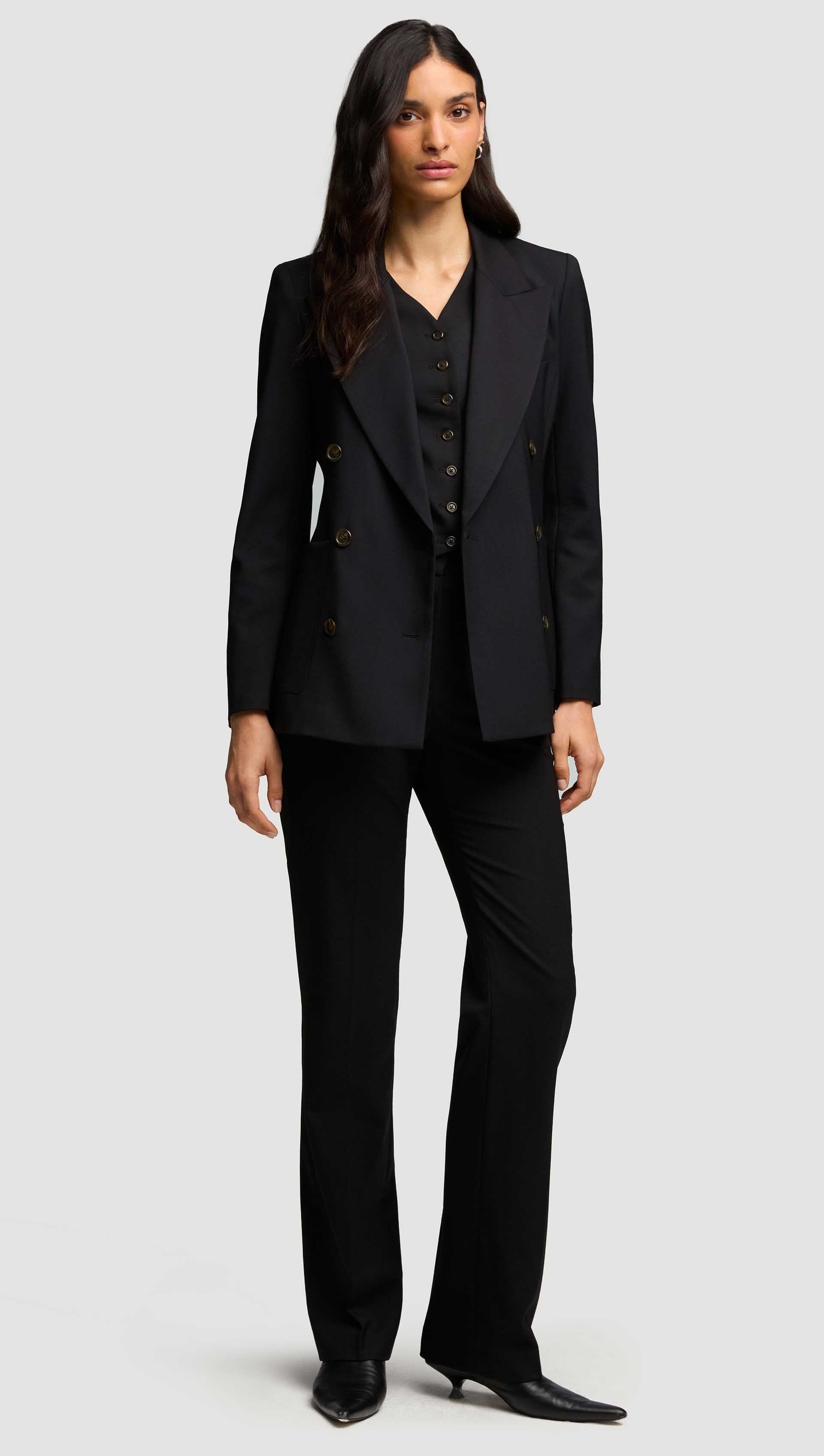 Embrace the stylish ease of our Straight Leg Trouser, a must-have for the discerning dresser. The Italian Seasonless Wool drapes elegantly along the body, creating a sleek silhouette and elongated shape. Combine with our Longsleeve Crew and Double-Breasted Blazer for a dapper uniform that always delivers.