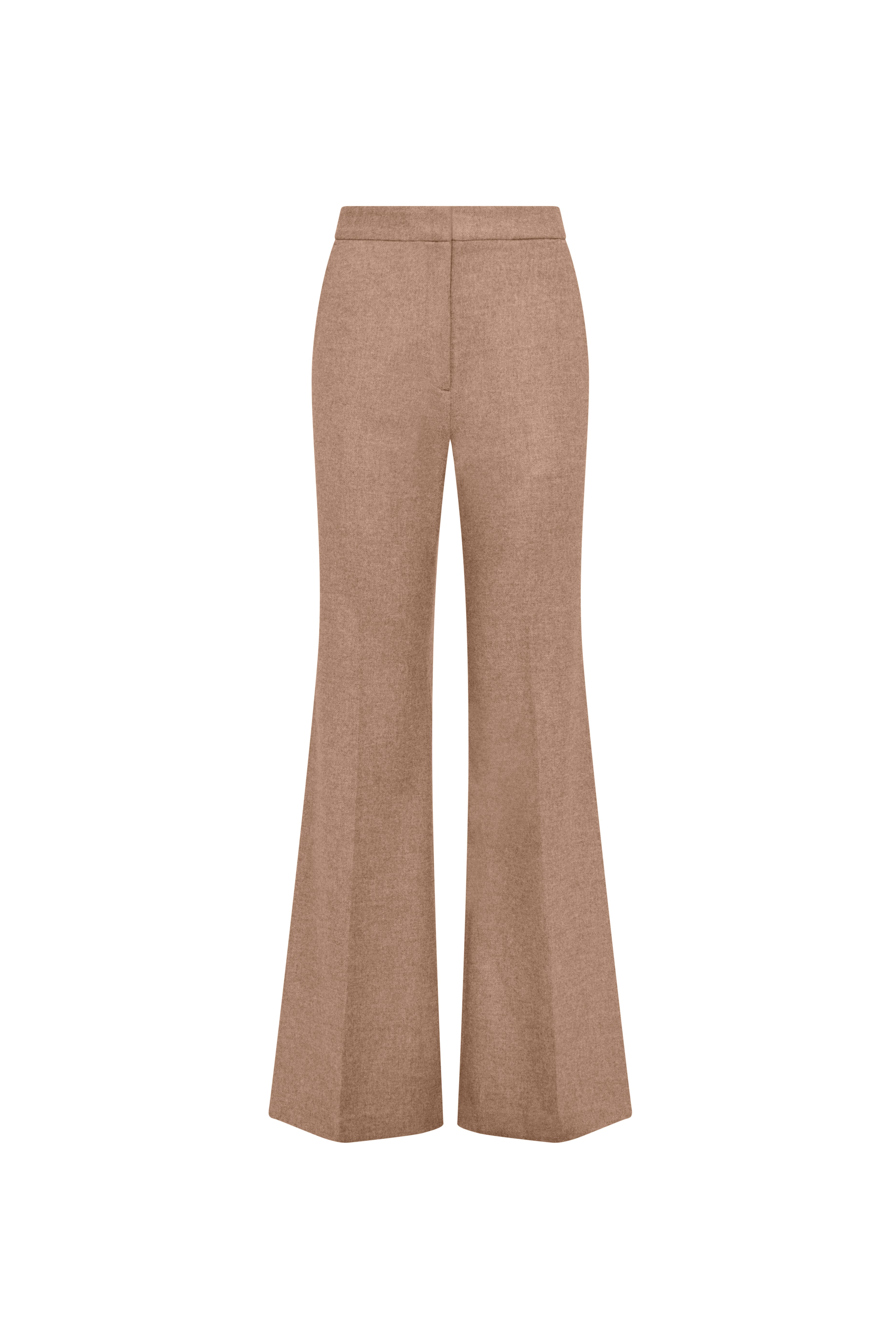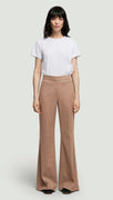 Crafted from soft, double-faced wool, this slim, flared trouser delivers cozy comfort for cooler days—minus the bulk. Designed with a contoured waistband and subtle flare below the knee, it pairs effortlessly with the matching blazer or your go-to knit.