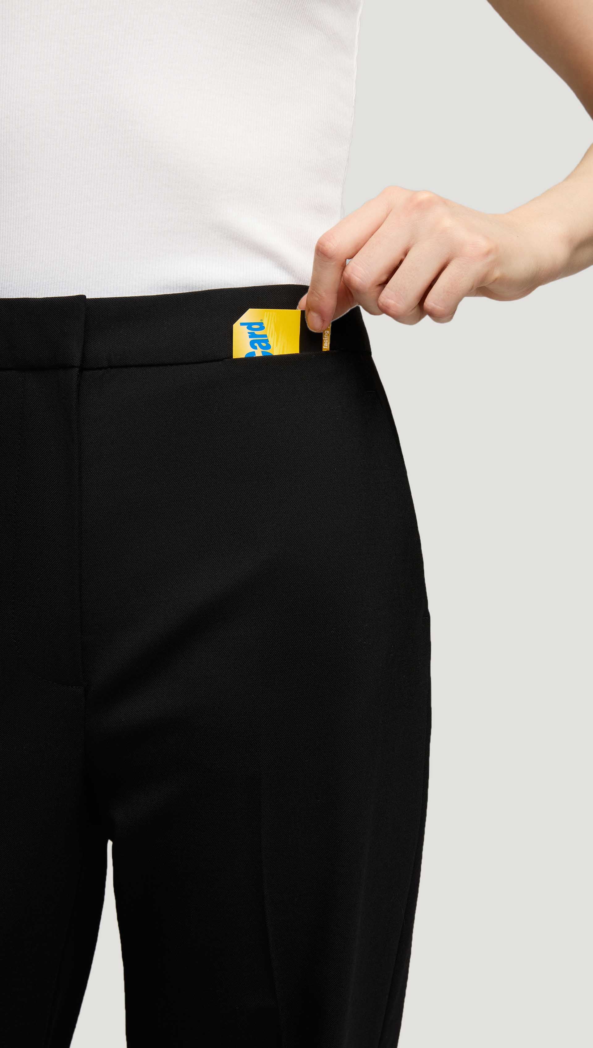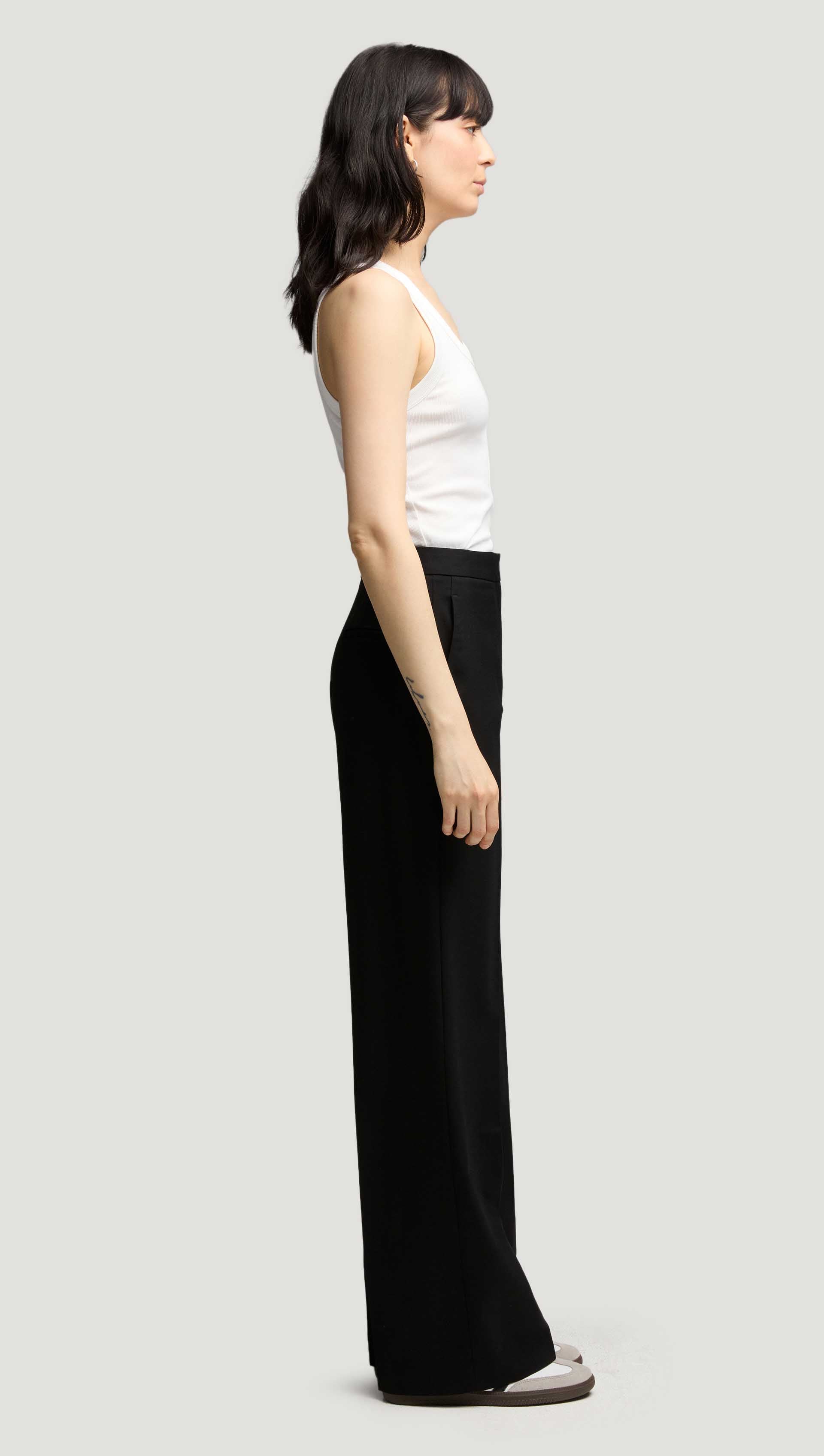 Made of a year-round Italian Seasonless Wool, this flattering silhouette features a high waist and a subtle wide leg. The lightweight fabric is naturally temperature regulating and odor and wrinkle resistant. Functional details include an exterior credit card pocket, front side pockets and back welt pockets. Style with heels or sneakers; we recommend hemming according to your preferred shoe choice.