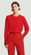 Elevate your look with this Collarless Blouse—designed for effortless sophistication. With its sleek hidden placket, sculptural sleeves, and striking color, every detail is intentional. Style it with denim for casual polish or pair with its matching trouser for a bold, pulled-together statement.