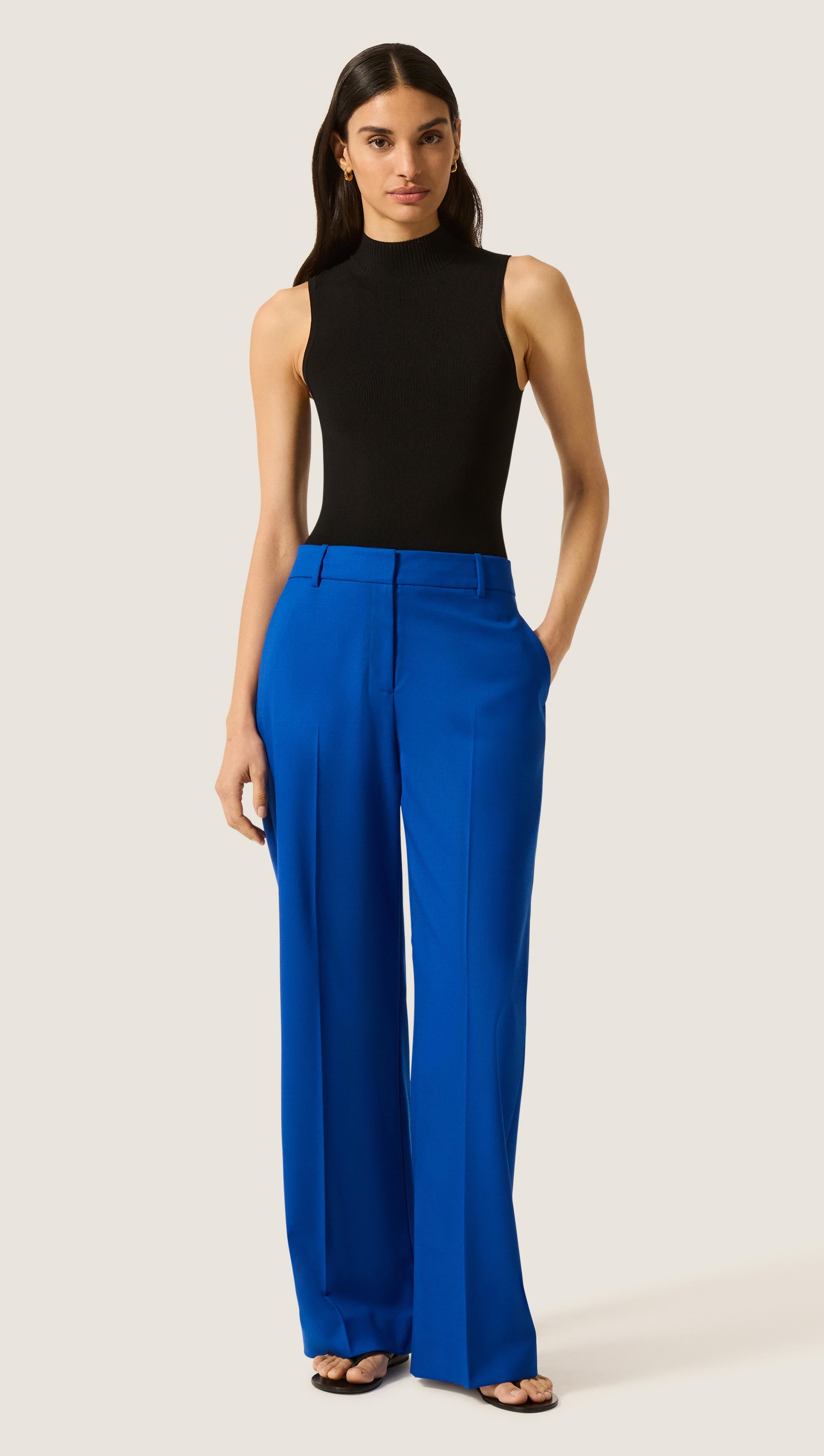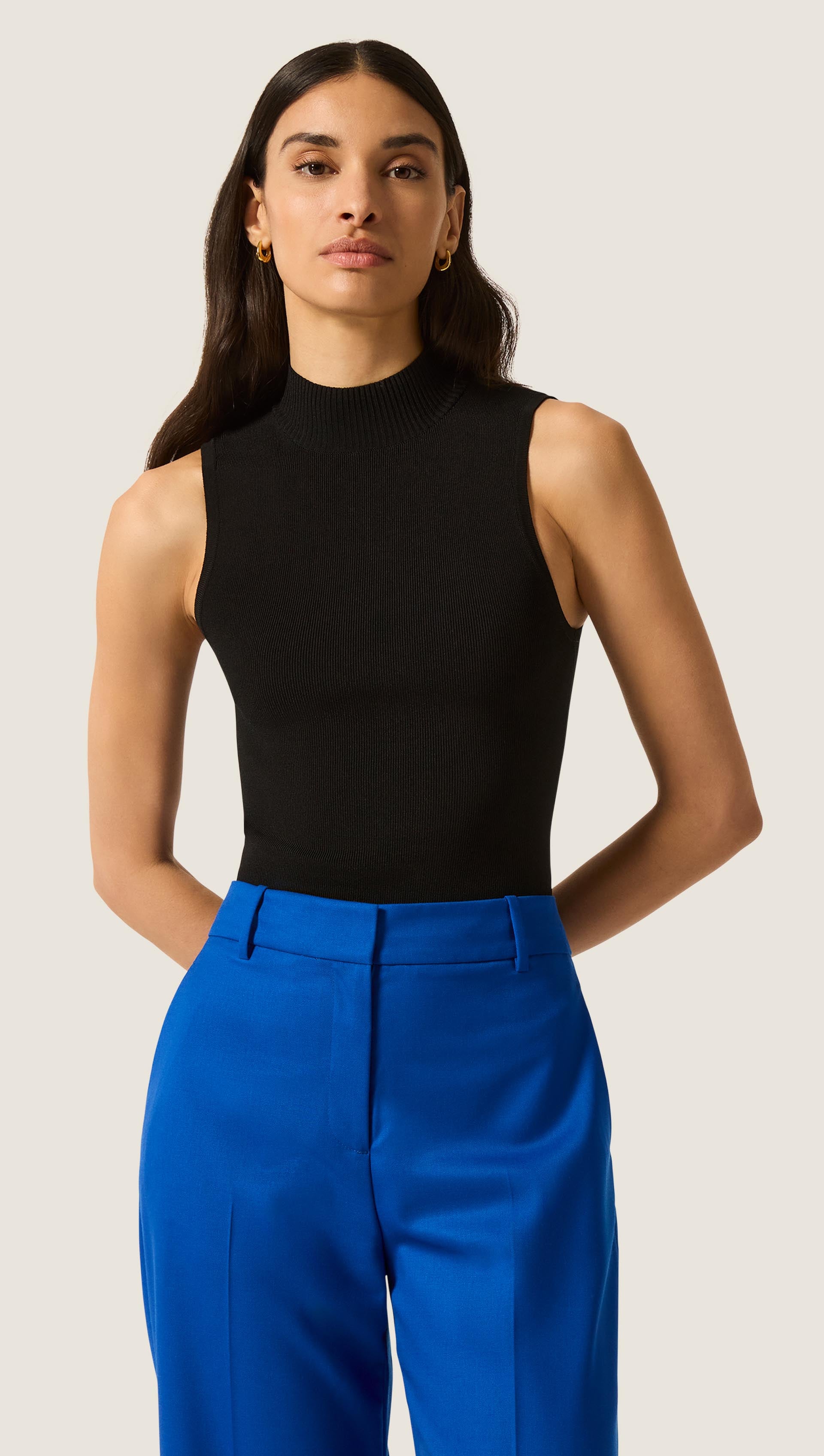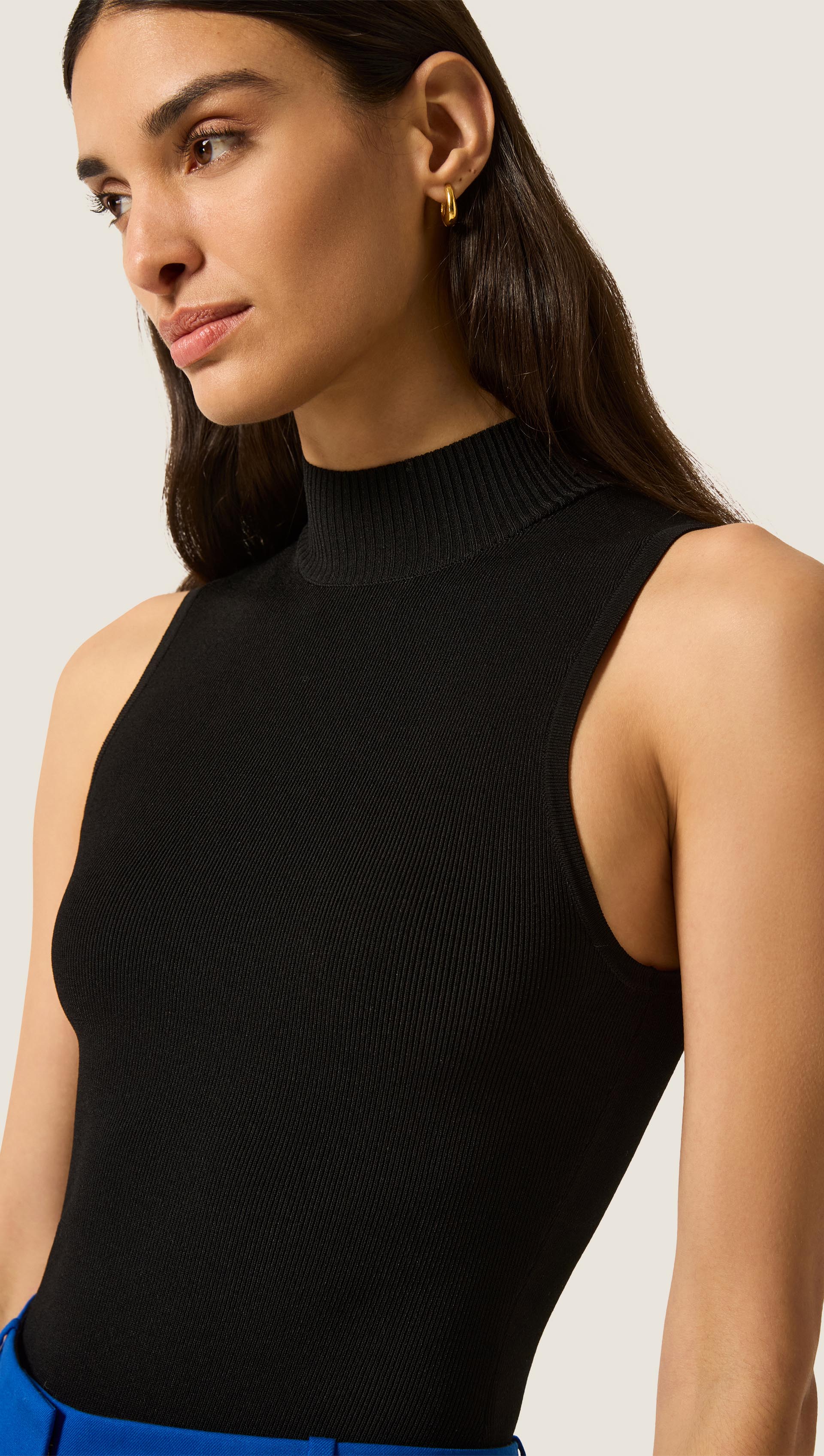 The Mock Neck Bodysuit is a modern essential designed for effortless versatility. Defined by clean lines, a thong closure, and intentional construction, it’s a refined base for denim or trousers.