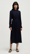 Expanding on our signature cowl-neck design in luxurious double georgette silk, this longsleeve midi dress is the epitome of elegance. Opt for an open neckline or a stylish cowl-neck silhouette to embrace the rarity of this understated gem…and bask in endless compliments.