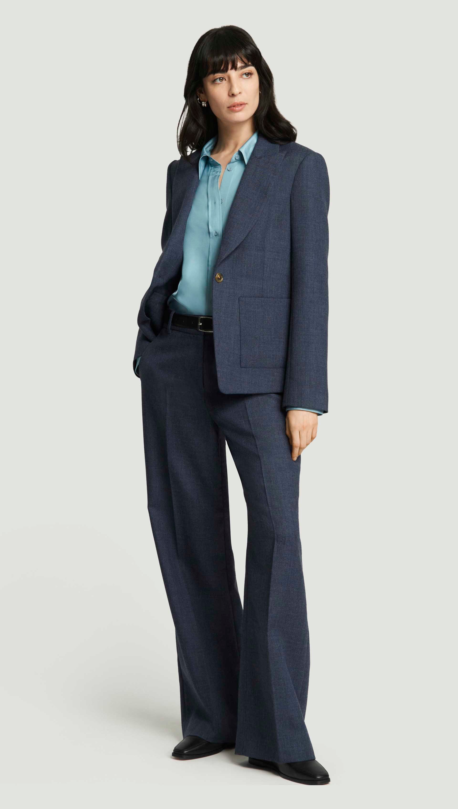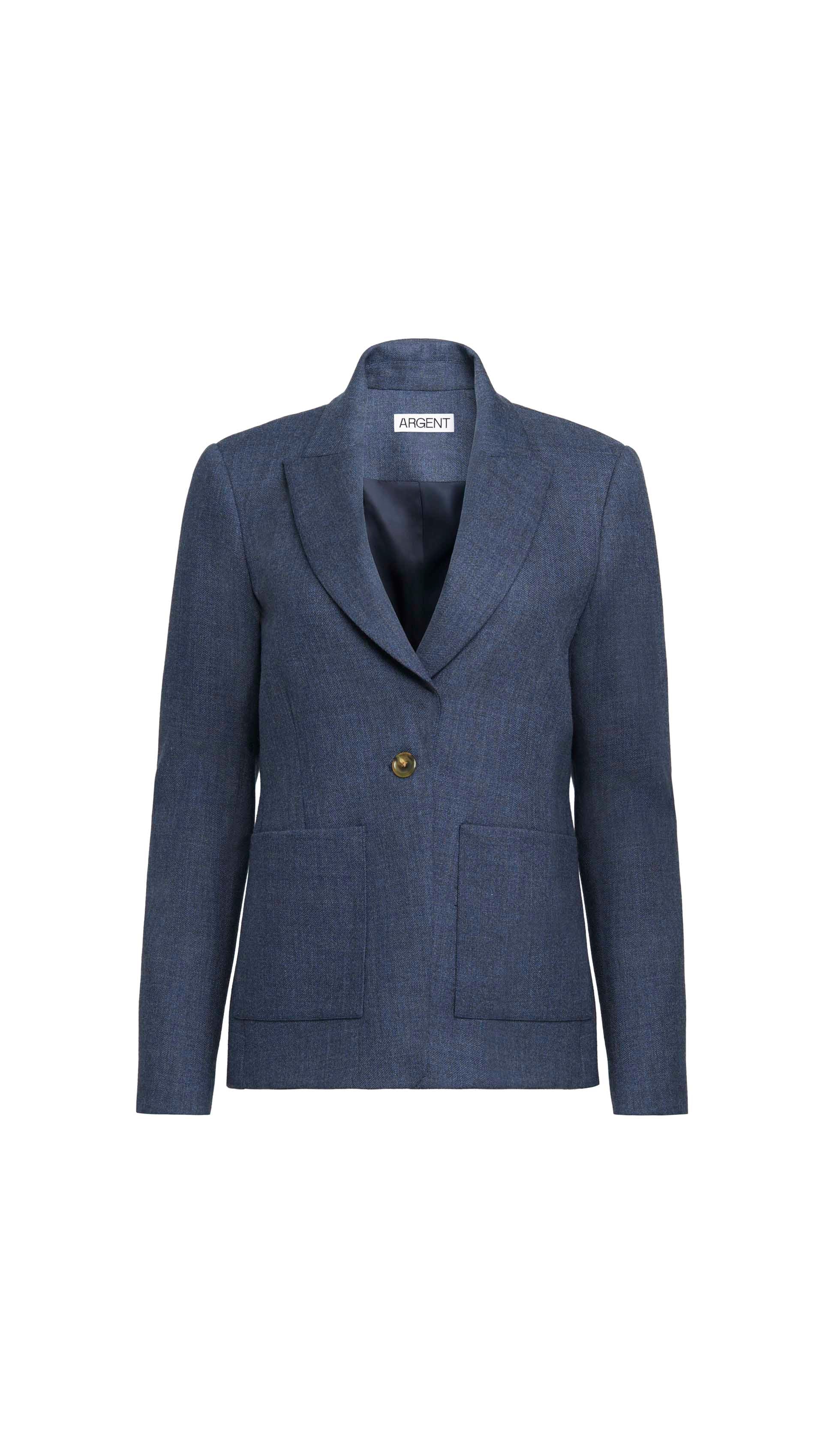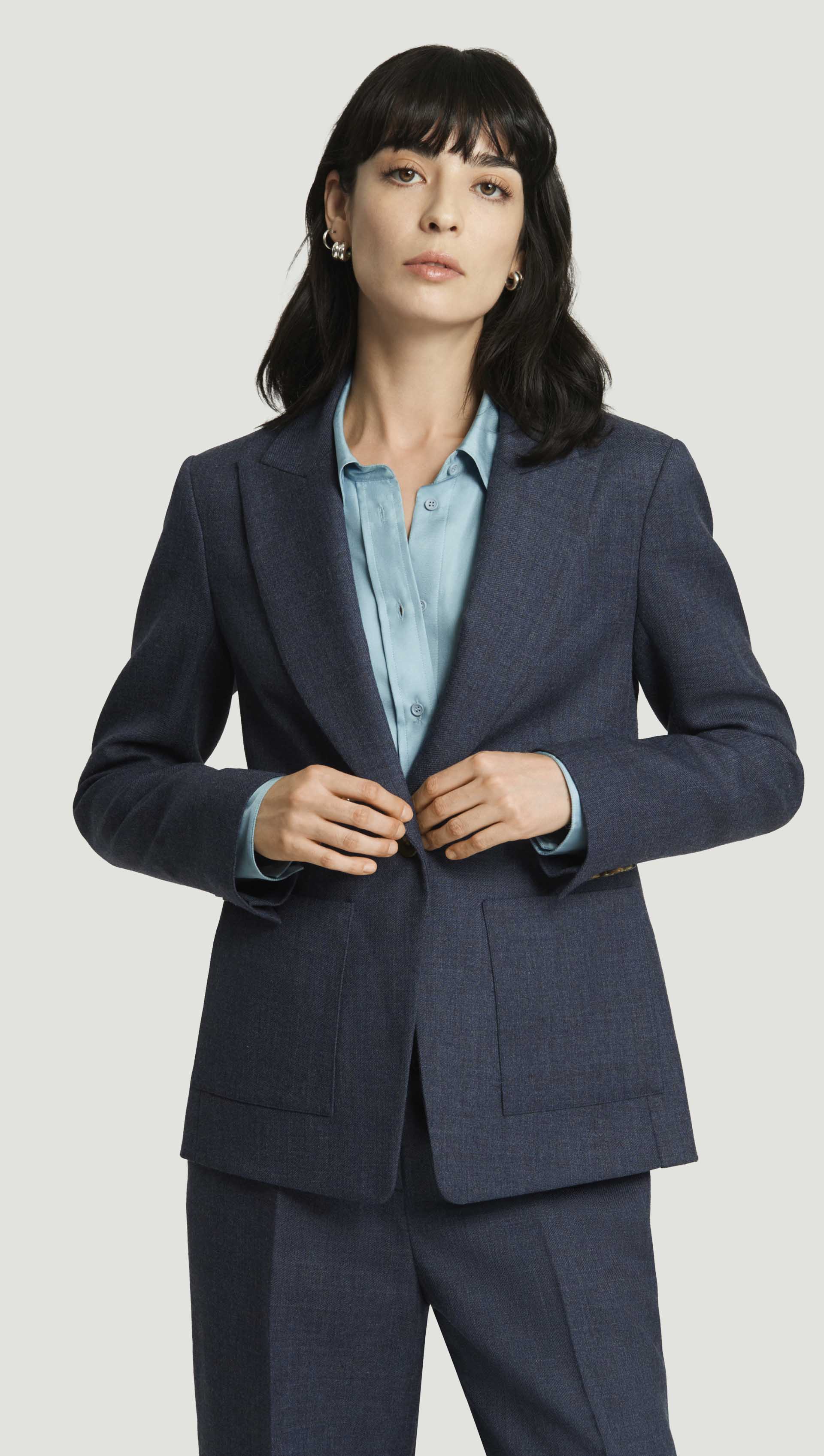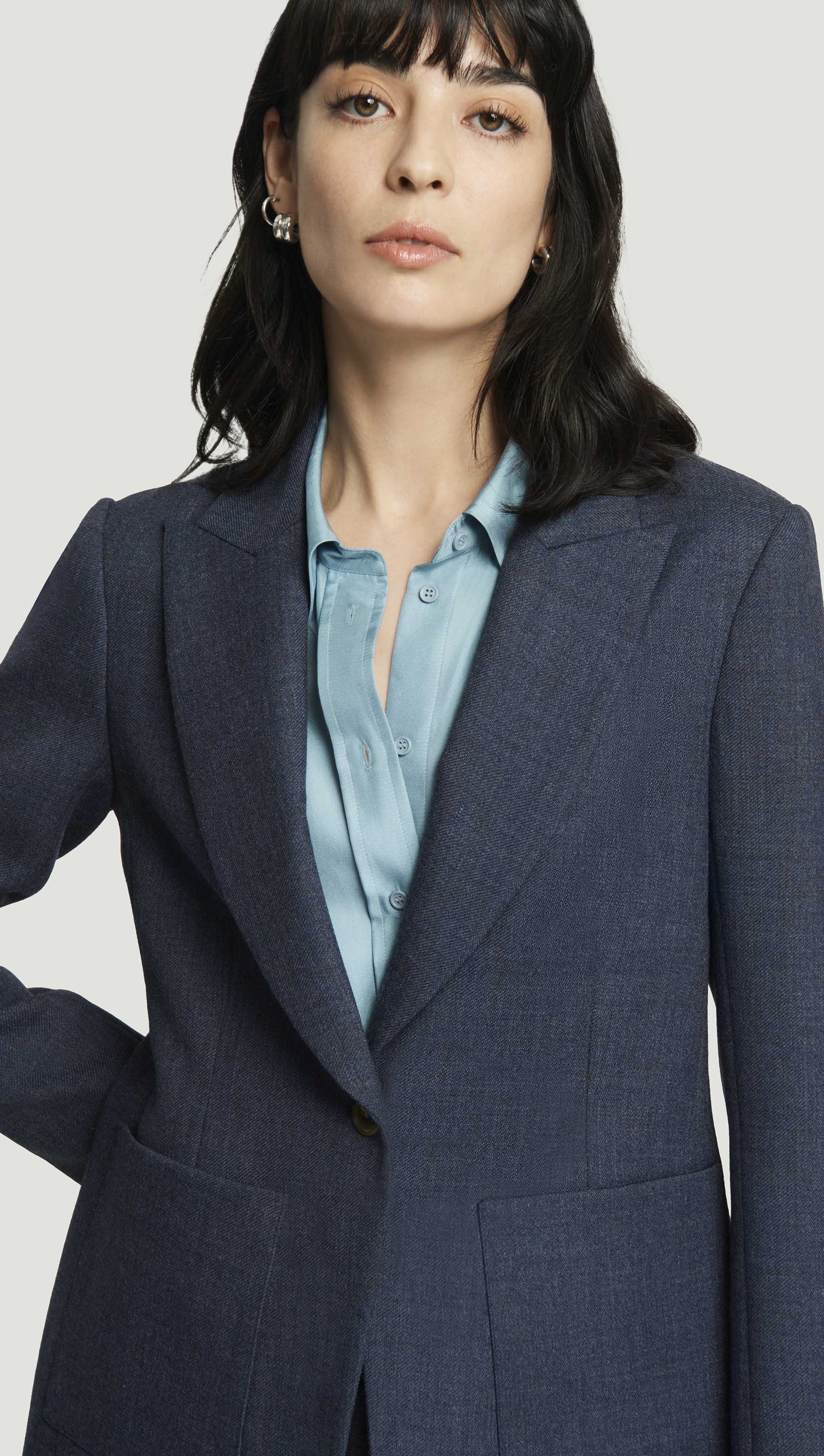 Made of Italian Bellagio wool, this timeless blazer features traditional suiting details, including a single button closure, peak label, and exterior patch pockets. Convey an air of elevated academia with this outerwear piece, which can be styled with a white button-up and jeans or a turtleneck and trousers.