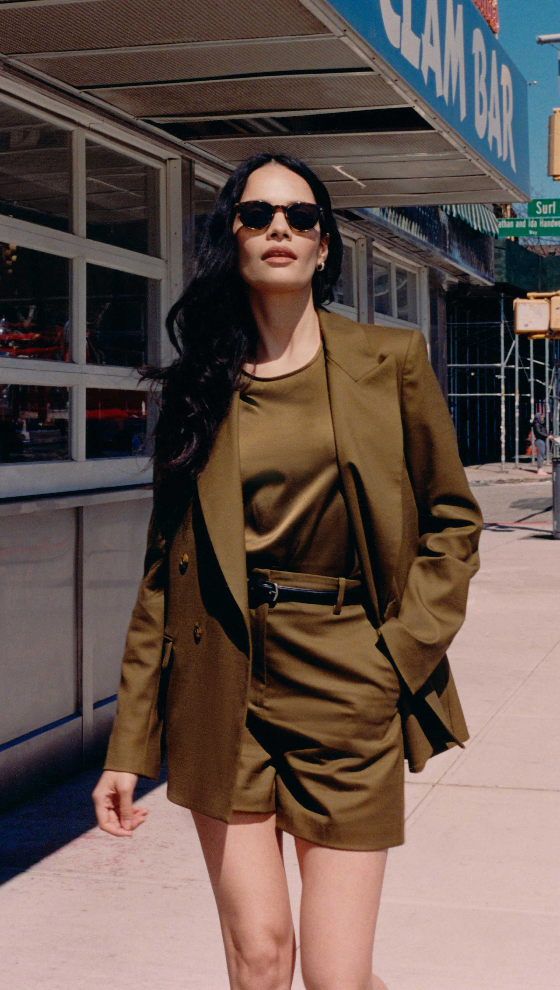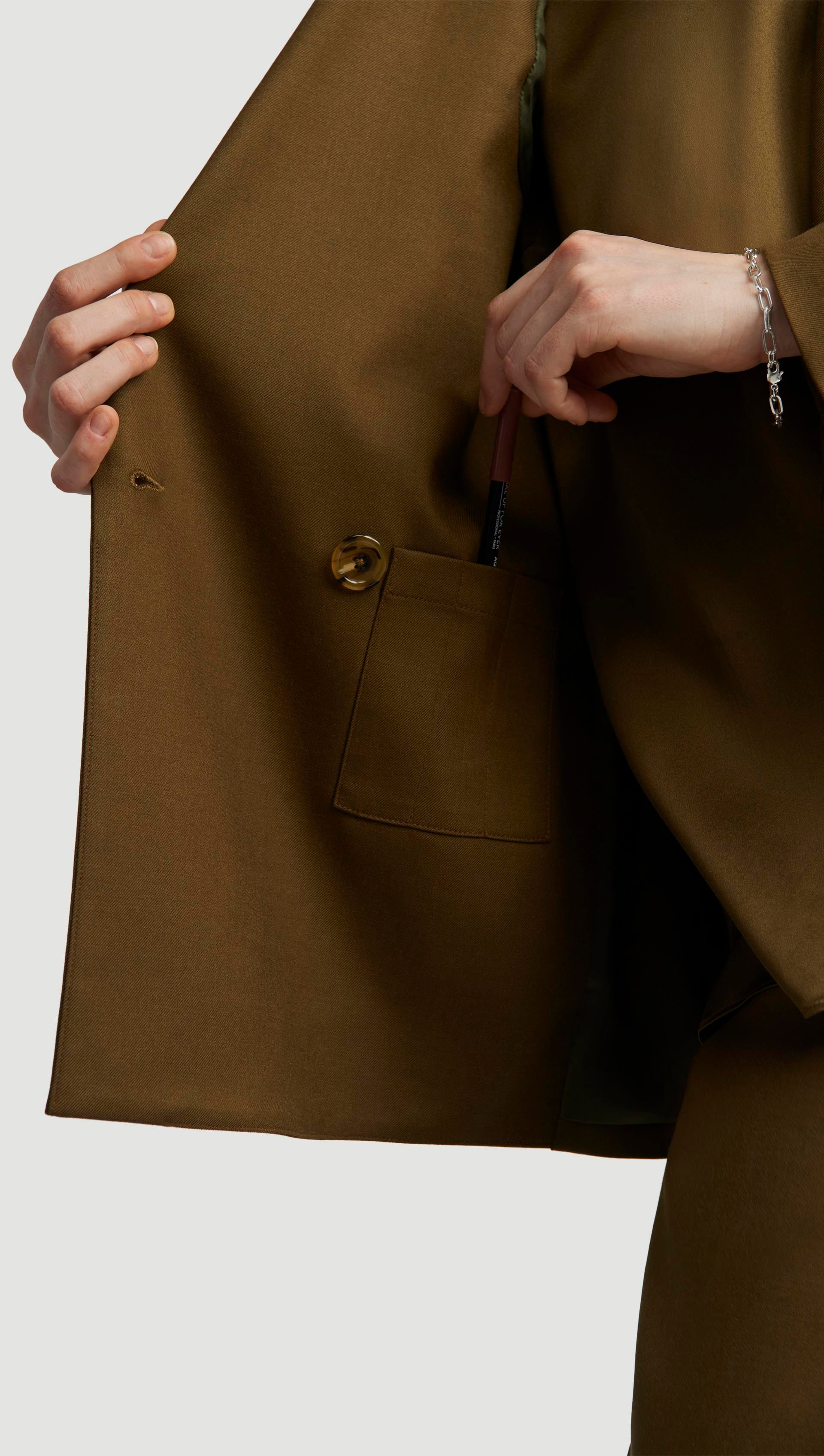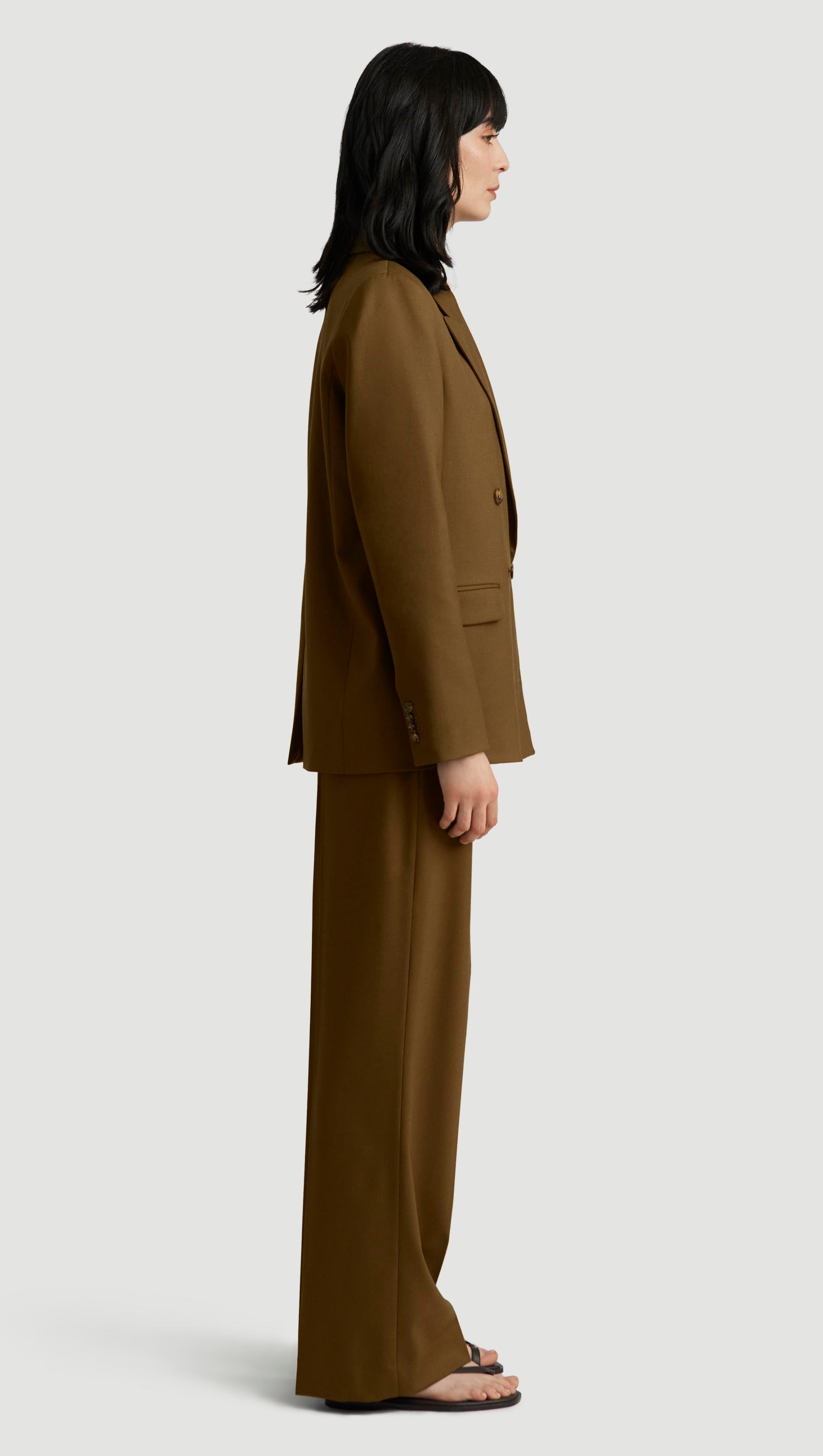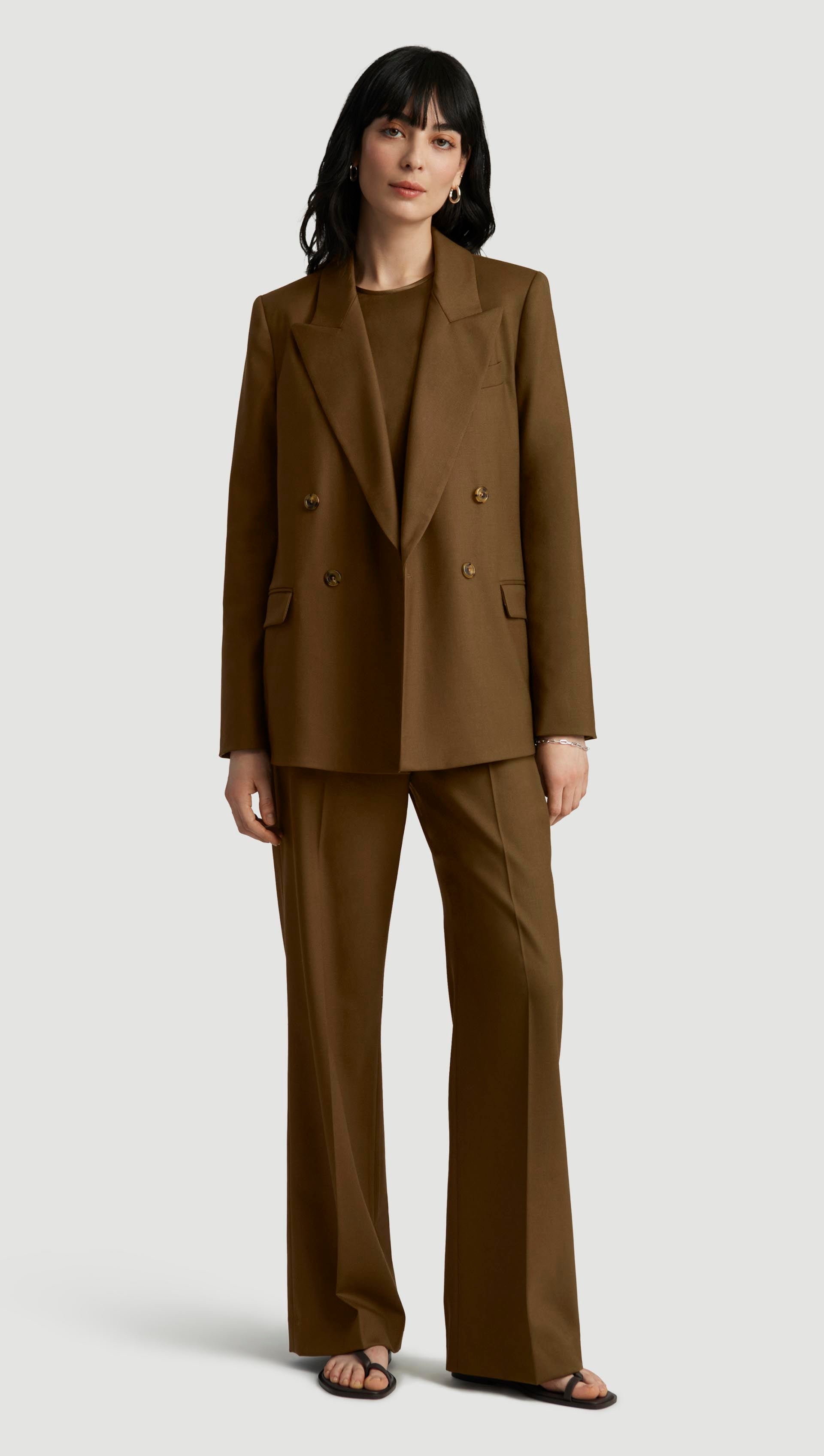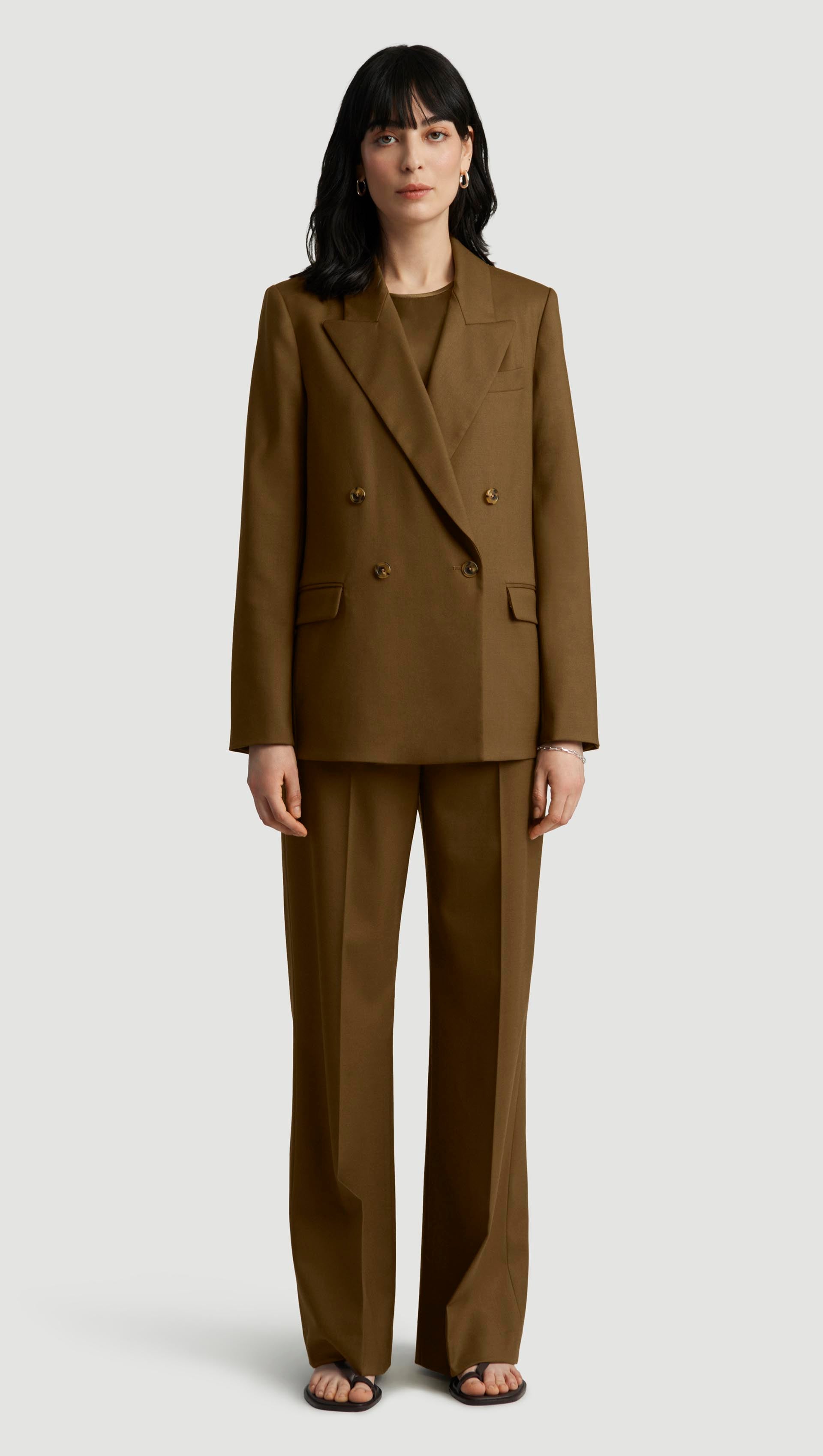 The Peak Lapel Blazer in Seasonless Wool will take you from fall to spring and back, no matter the weather. Design highlights include the aforementioned peak lapel, an easy double-breasted closure, slim-fitting shoulders, a straight and loose body for a very comfortable fit, as well as interior pockets.