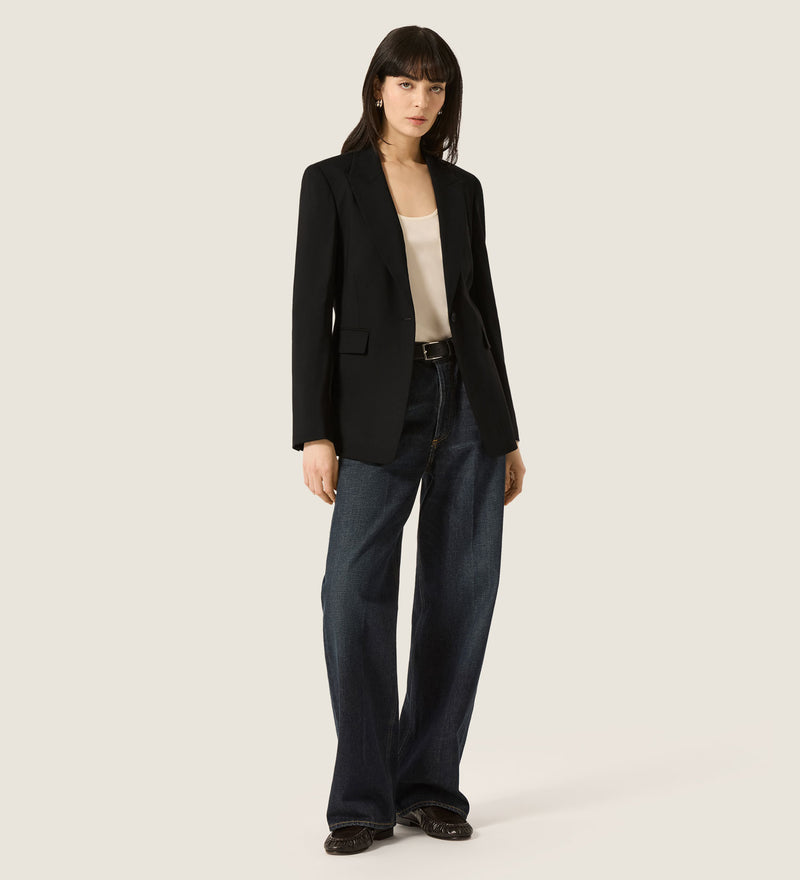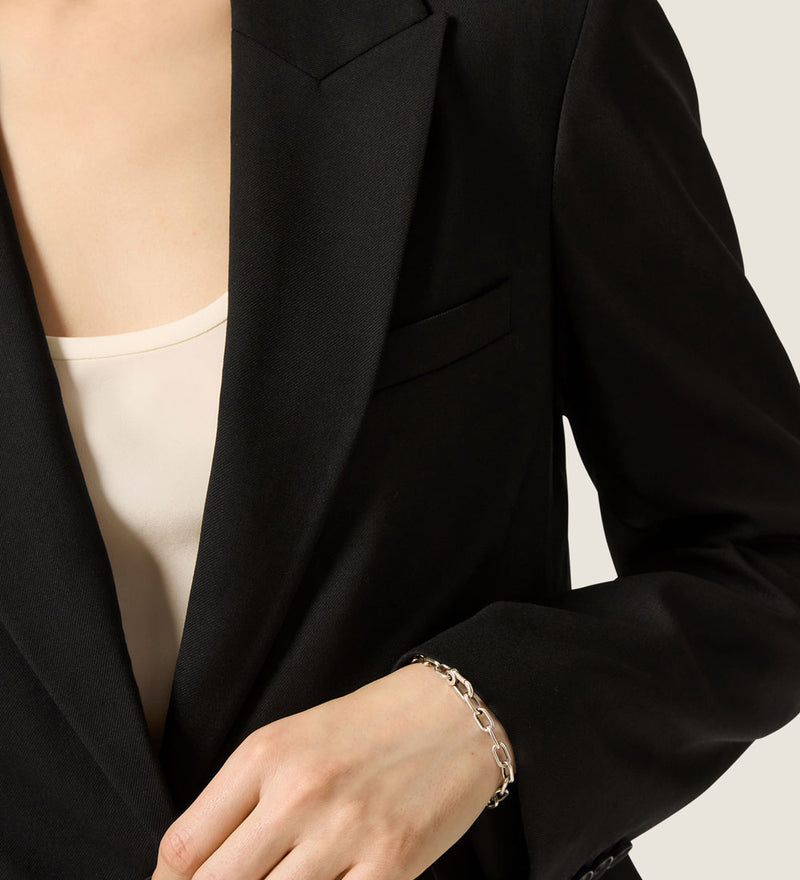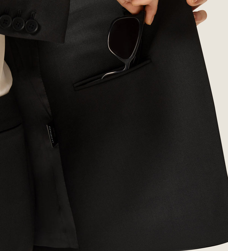 I love the modern, minimalist cut of this blazer. I can wear it with a suit to trial or with jeans for a night out.