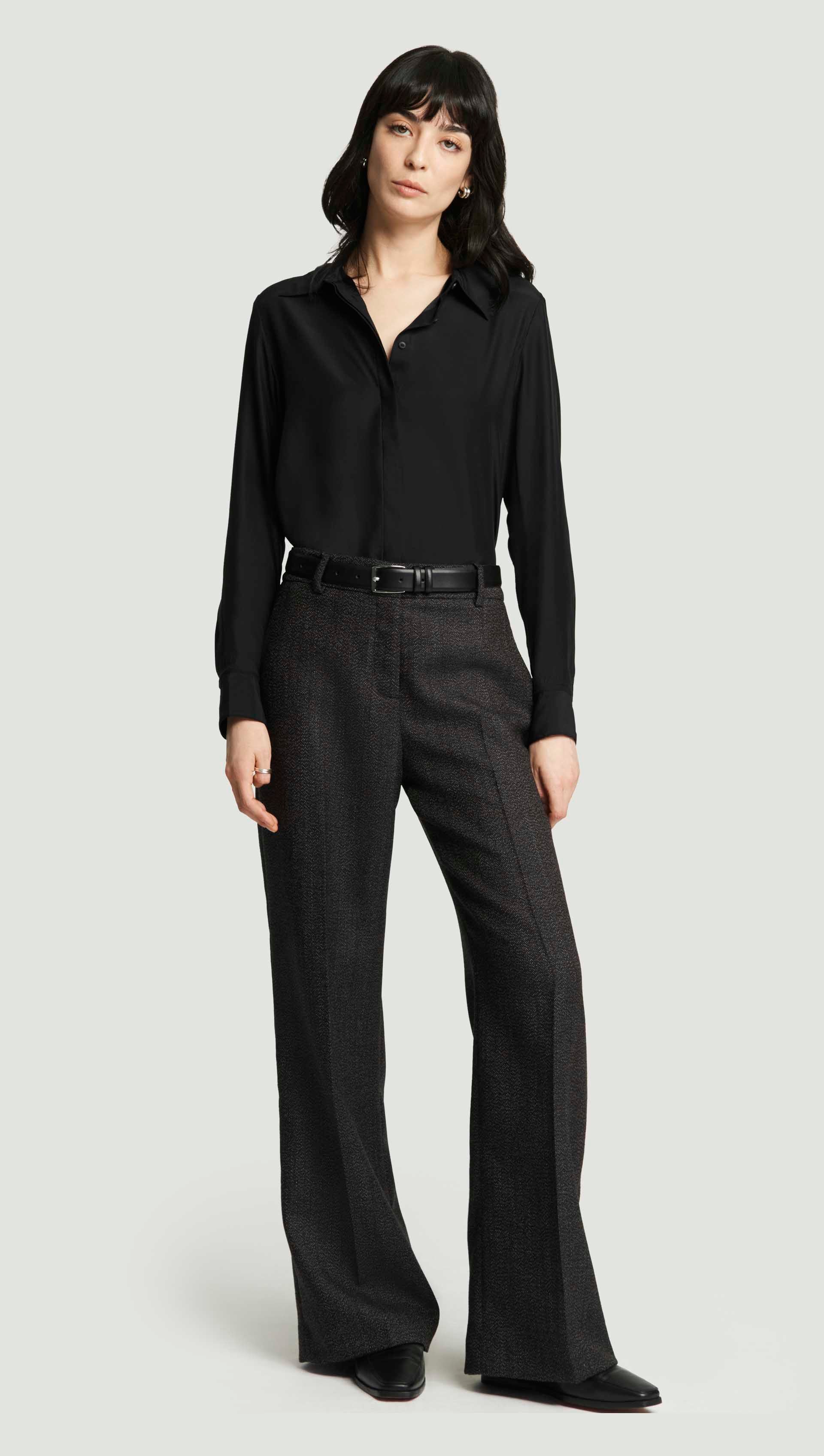 Get to know the casual friend to our best-selling wide leg trouser, with the stylish addition of classic functional details, belt loops, and buttons at back pockets. Crafted from Italian tweed, this style will instantly elevate your everyday wardrobe.